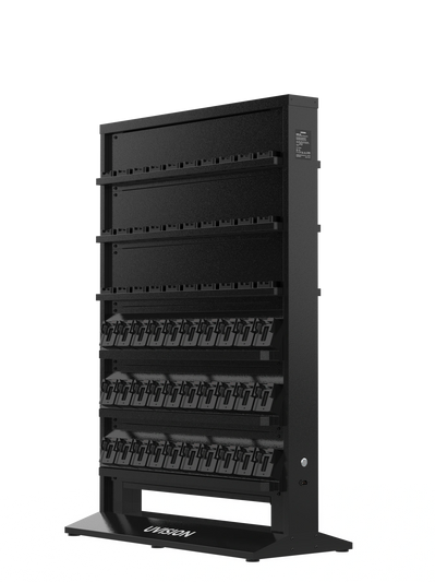 Modular charging rack UVMC-120 is equipped with 12 charging modules. Each module has 10 charging positions. Corded light and cordless light charging modules can be choosed according to users’ requirement.